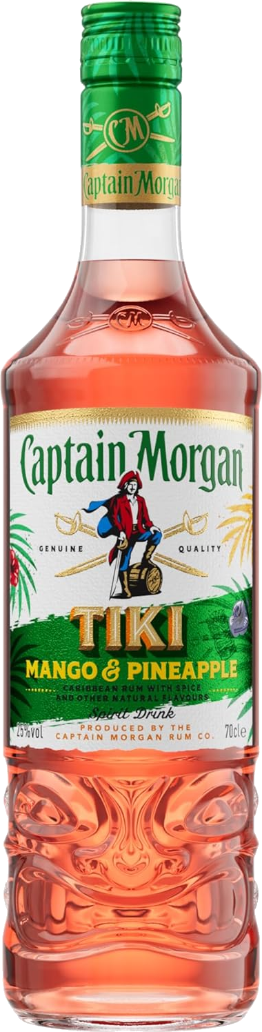 Captain Morgan Tiki is a tropical-inspired rum blend that combines the signature Captain Morgan rum with exotic fruit flavours. It offers a vibrant and fruity taste with notes of pineapple, mango, citrus, and a hint of coconut. This rum is great for creating fun and colourful tiki cocktails that transport you to a tropical paradise.