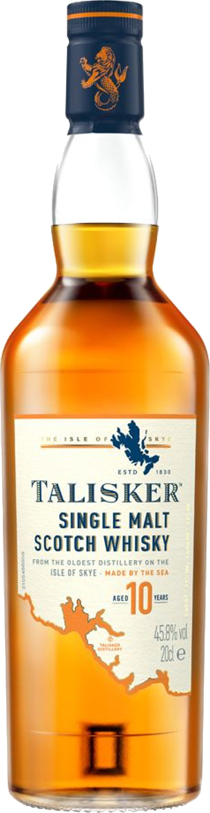 Talisker 10yr Old Single Malt 70cl: Talisker 10yr Old Single Malt is a renowned Scotch whisky from the Isle of Skye. It is known for its distinctive maritime character and peaty flavor profile. Talisker 10yr Old offers a complex balance of smoky, briny, and peppery notes, with hints of citrus and dried fruits. It has a rich and full-bodied texture, making it a favorite among whisky enthusiasts. Talisker 10yr Old can be enjoyed neat, with a drop of water, or used in whisky-based cocktails for a robust and smoky twist.
